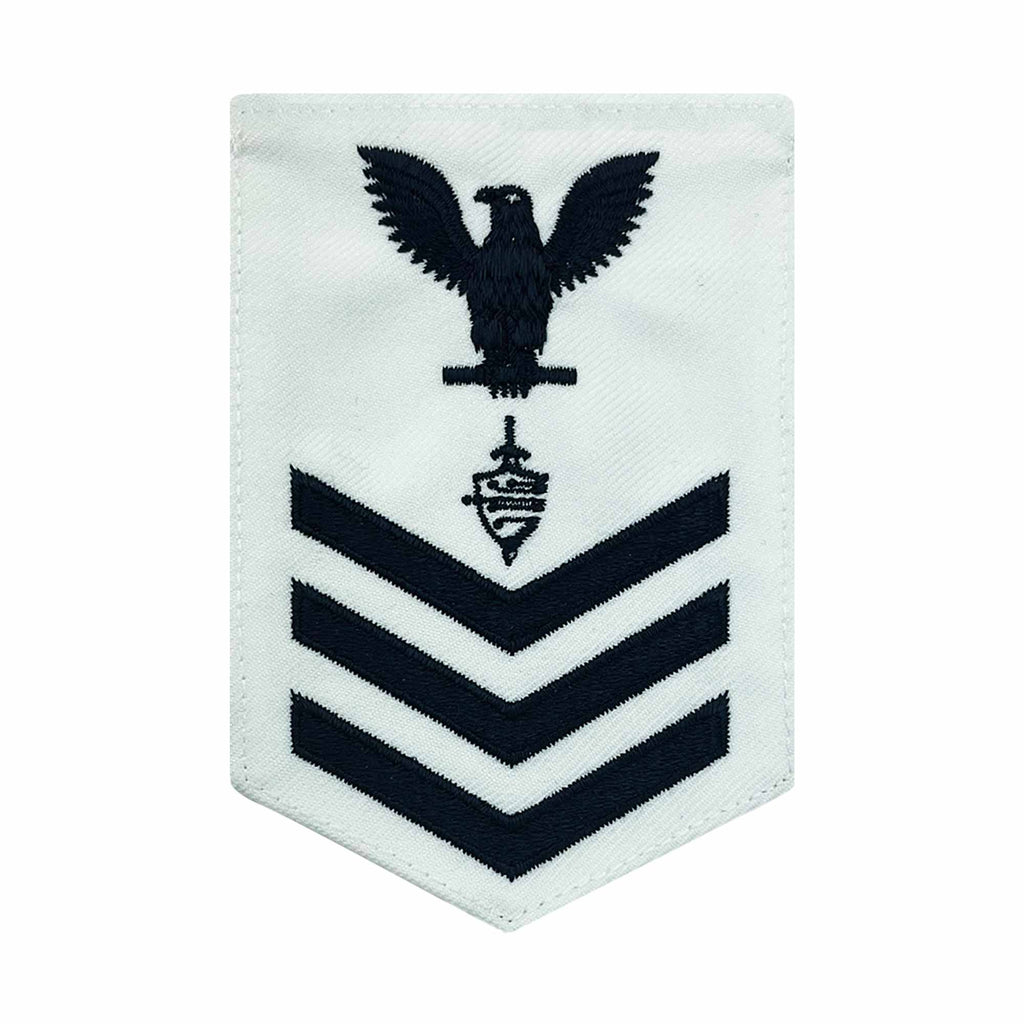 Navy rating badge E-6 blue embroidered on white certified Navy CNT Cyber Warfare Technician (CWT).