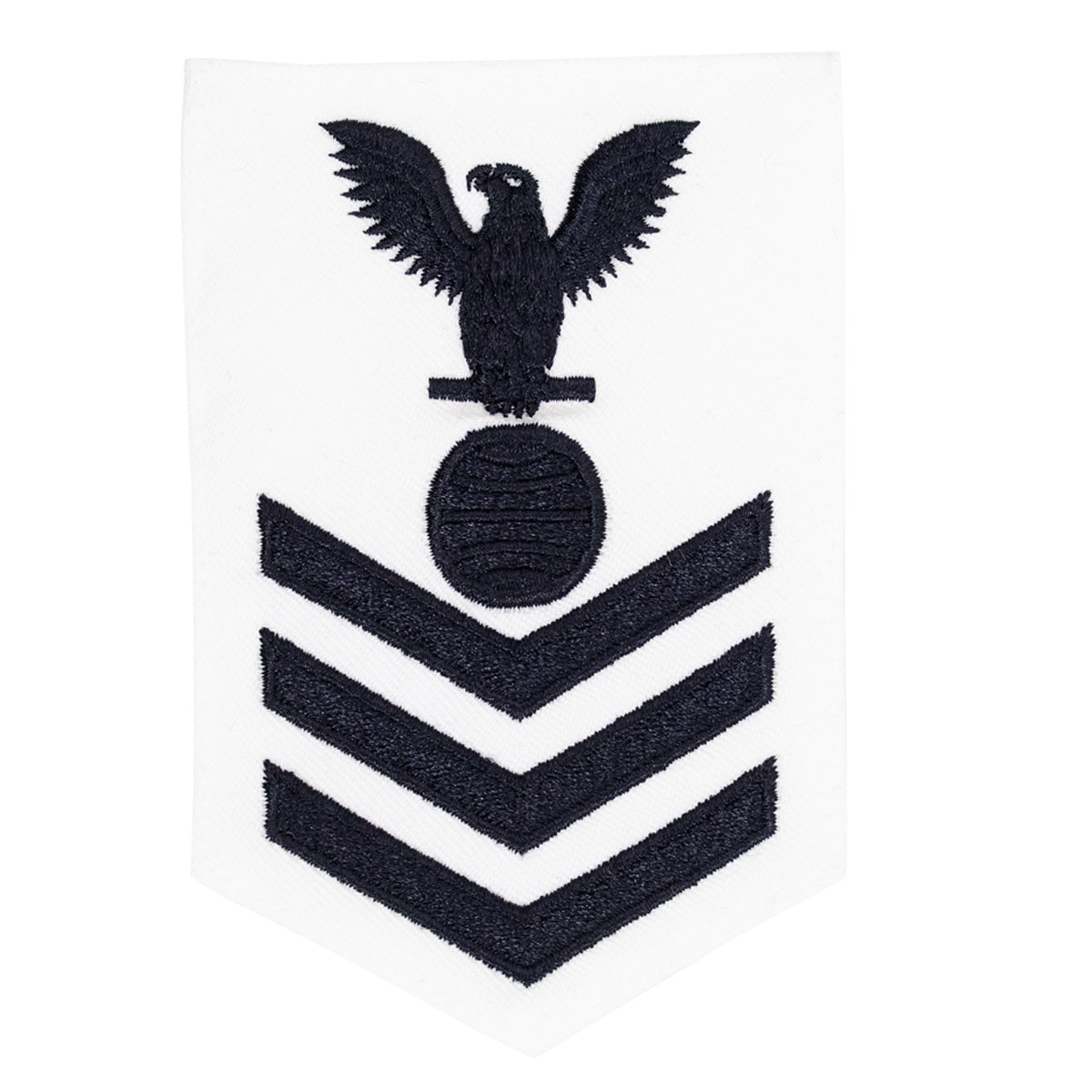 E-6 Electricians Mate (EM) White CNT Navy Female rating badge.