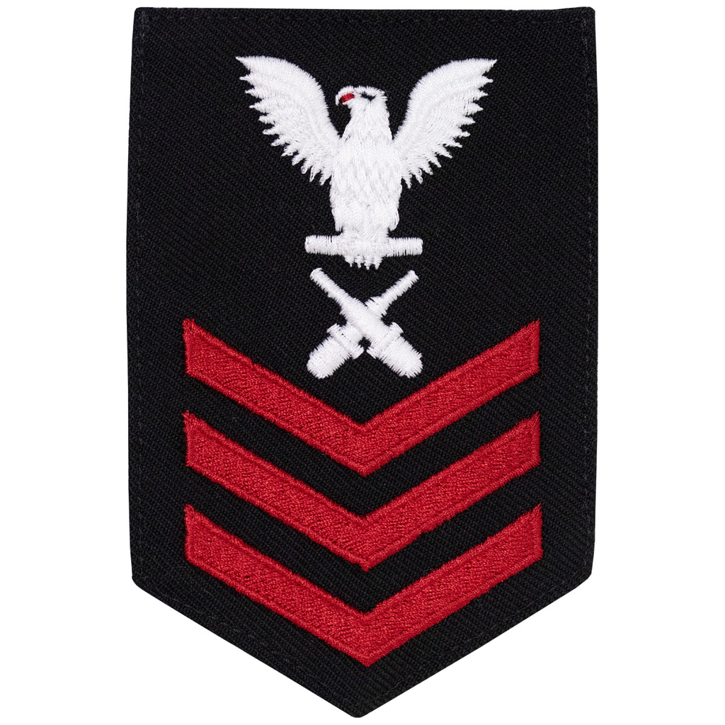 E-6 Gunners Mate (GM) Serge Navy Female rating badge.