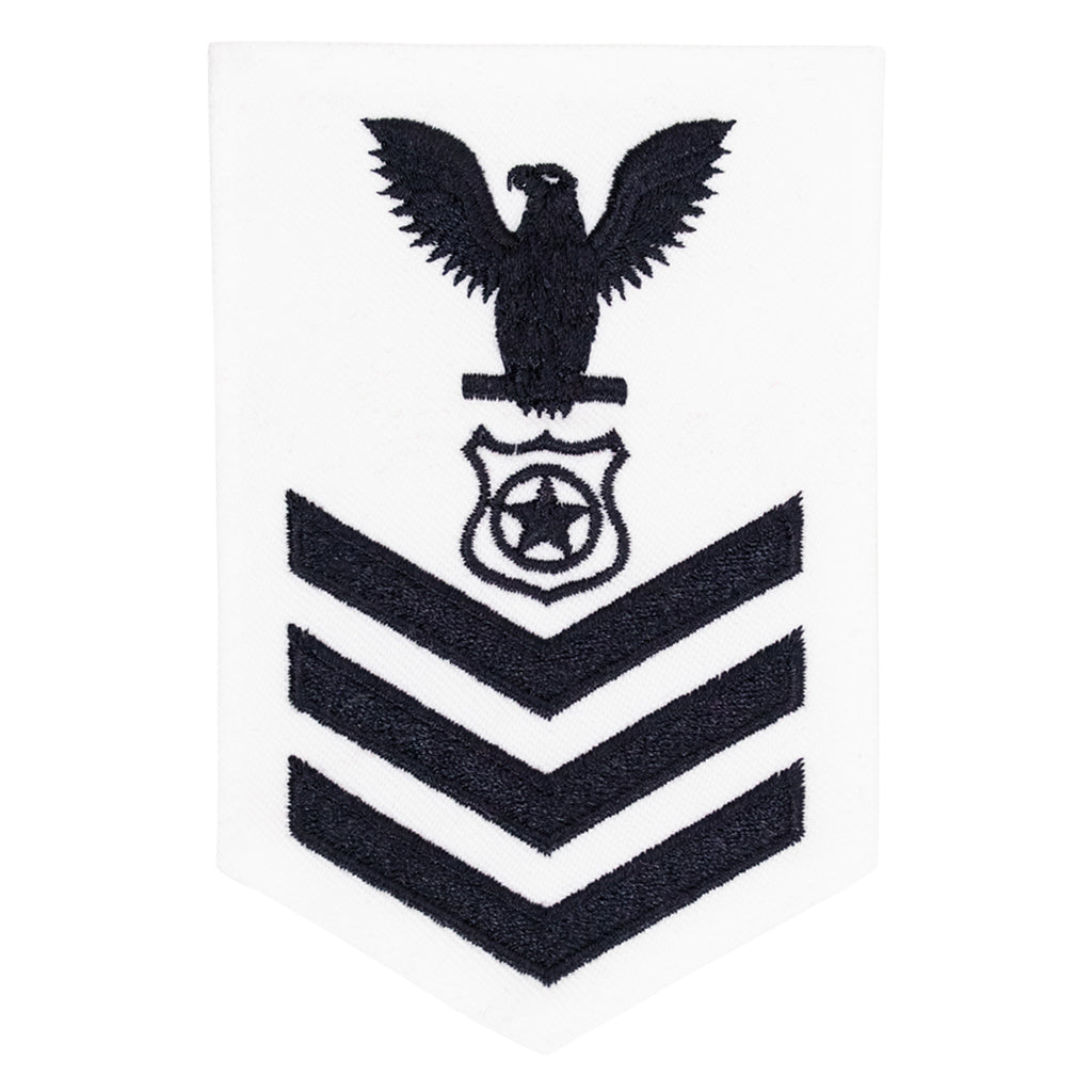 E-6 Master At Arms (MA) white CNT Navy Female rating badge.