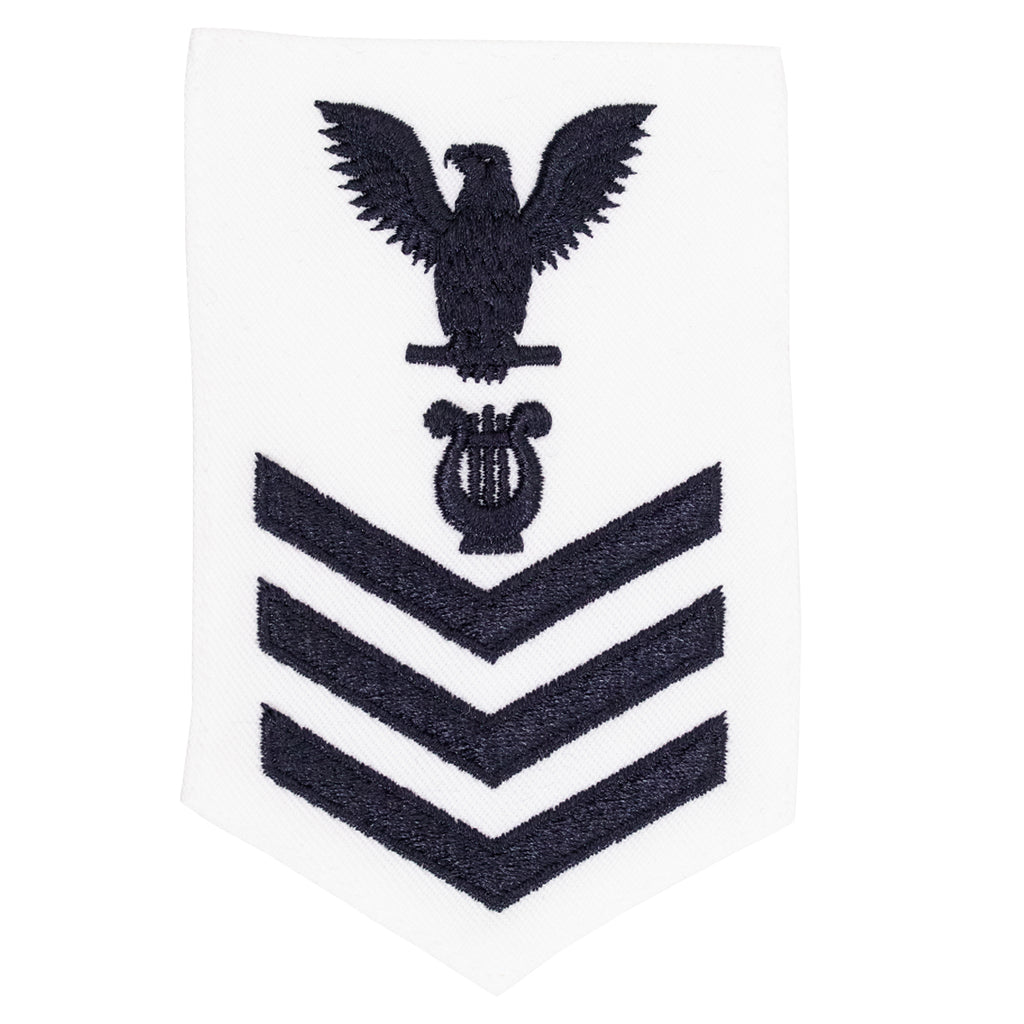 E-6 Musician (MU)white CNT Navy Female rating badge.