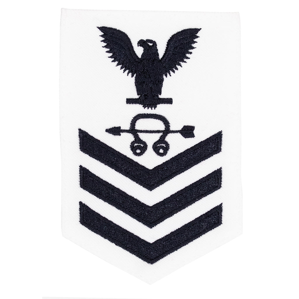 E-6 Sonarman (ST) white CNT Navy Female rating badge.