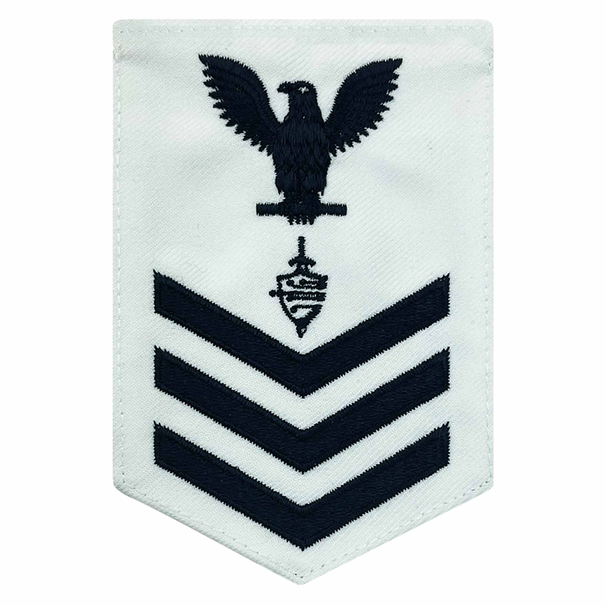 Navy rating badge E-6 blue embroidered on white certified Navy CNT Cyber Warfare Technician (CWT).
