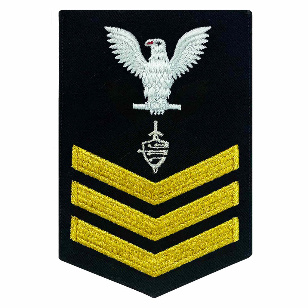 Navy E6 MALE Rating Badge: CWT Cyber Warfare Technician - seaworthy gold on blue
