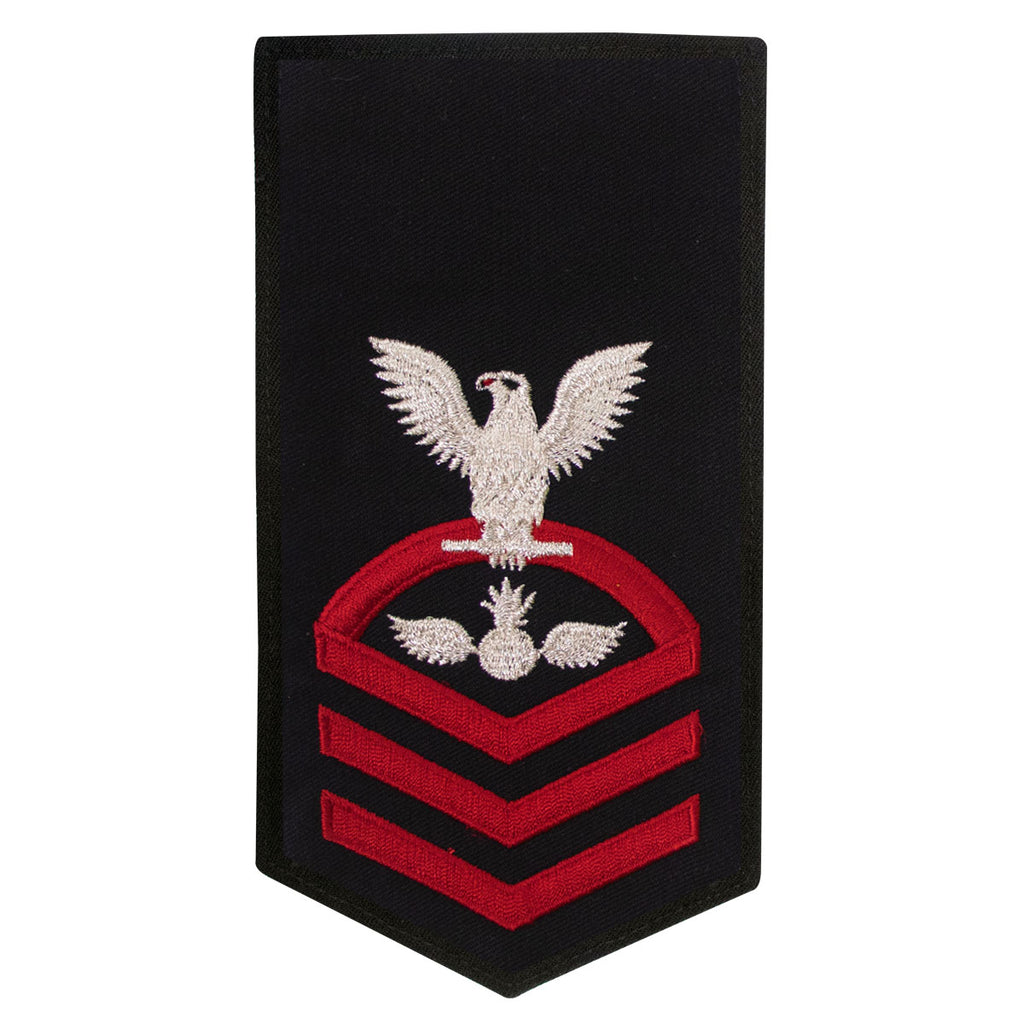 Navy rating badge E-7 seaworthy-all machine made eagle and center with embroidered red embroidered on blue AO Aviation Ordnanceman