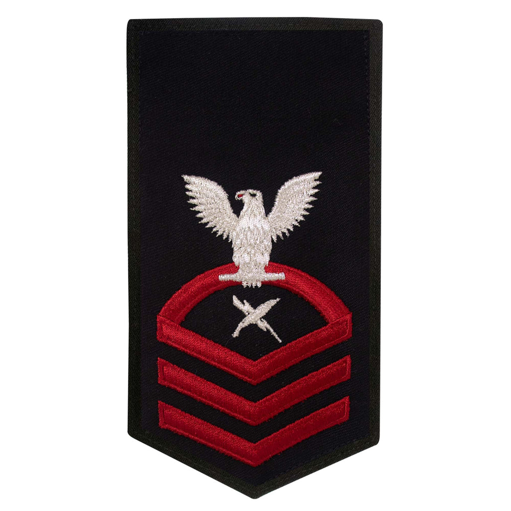 Navy rating badge Female E-7 seaworthy-all machine made eagle and center with red embroidered on blue CT Cryptologic Technician