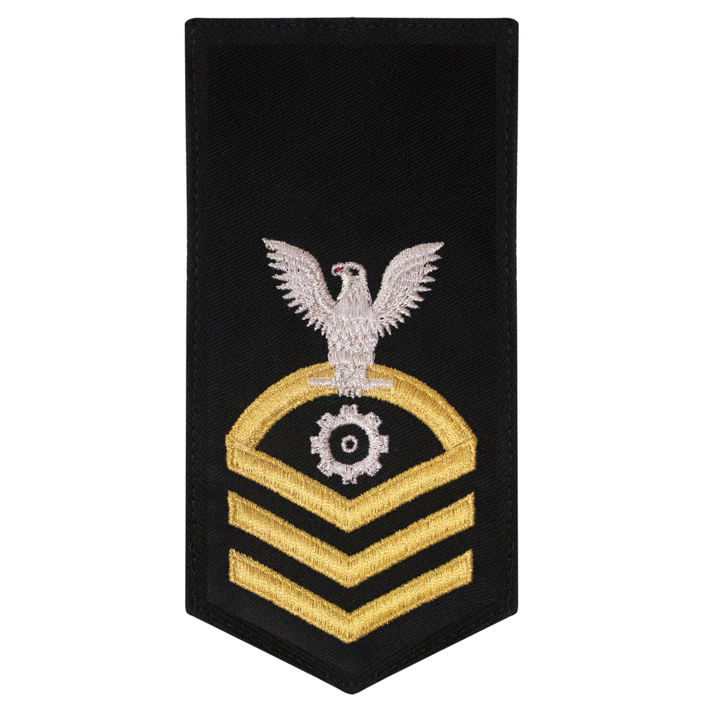 Navy rating badge E-7 seaworthy-all machine made eagle and center with embroidered gold embroidered on blue EN Engineman