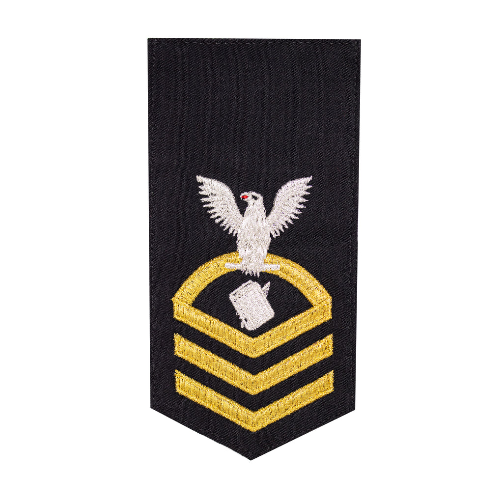 Navy Female rating badge E-7 seaworthy-all machine made eagle and center with embroidered gold embroidered on blue (PN) Personnelman.