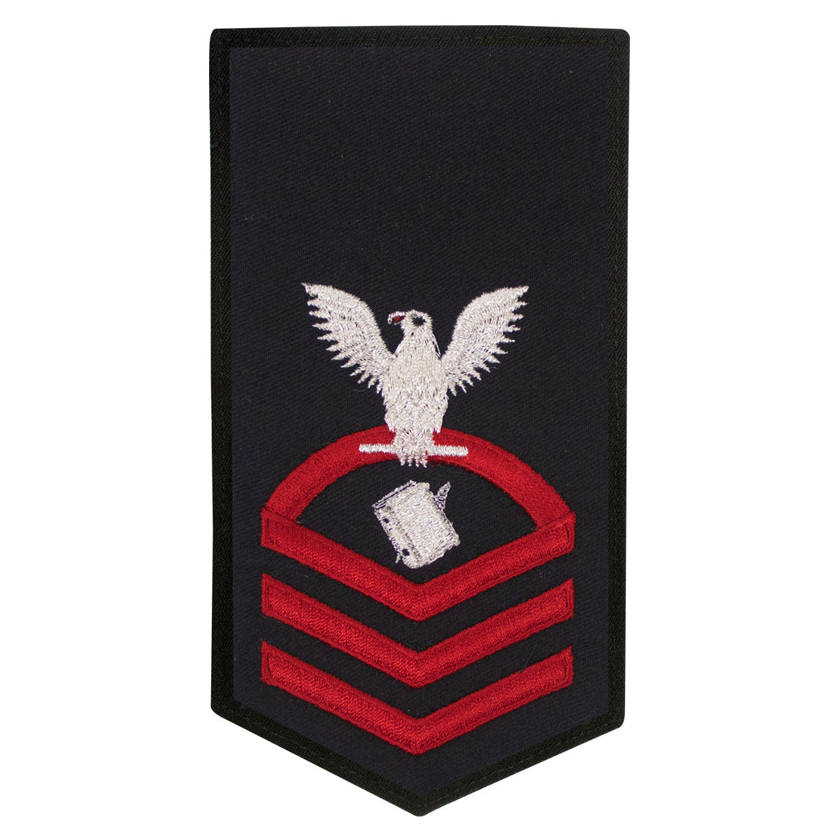 Navy rating badge E-7 seaworthy-all machine made eagle and center with embroidered red embroidered on blue (PS) Personnelman.