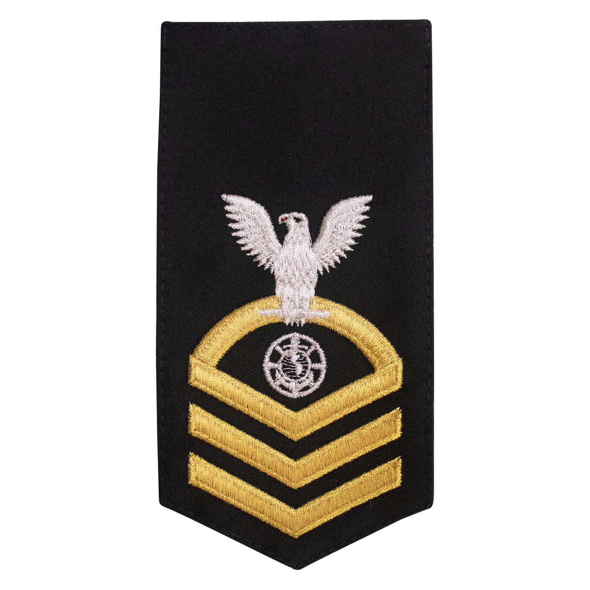 Navy rating badge E-7 seaworthy-all machine made eagle and center with embroidered gold embroidered on blue RP Religious Programs Specialist