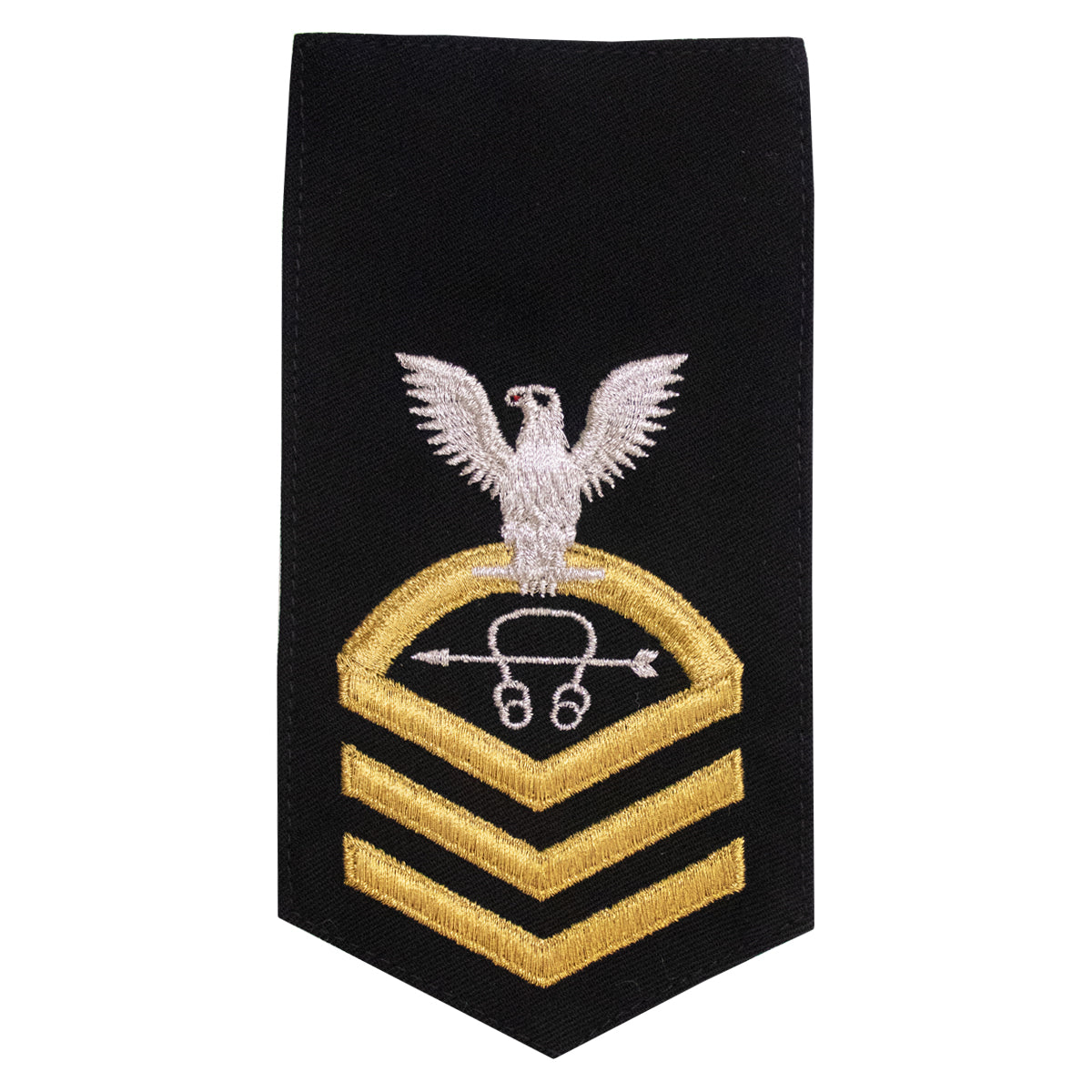 Navy rating badge E-7 seaworthy-all machine made eagle and center with embroidered gold embroidered on blue ST Sonarman