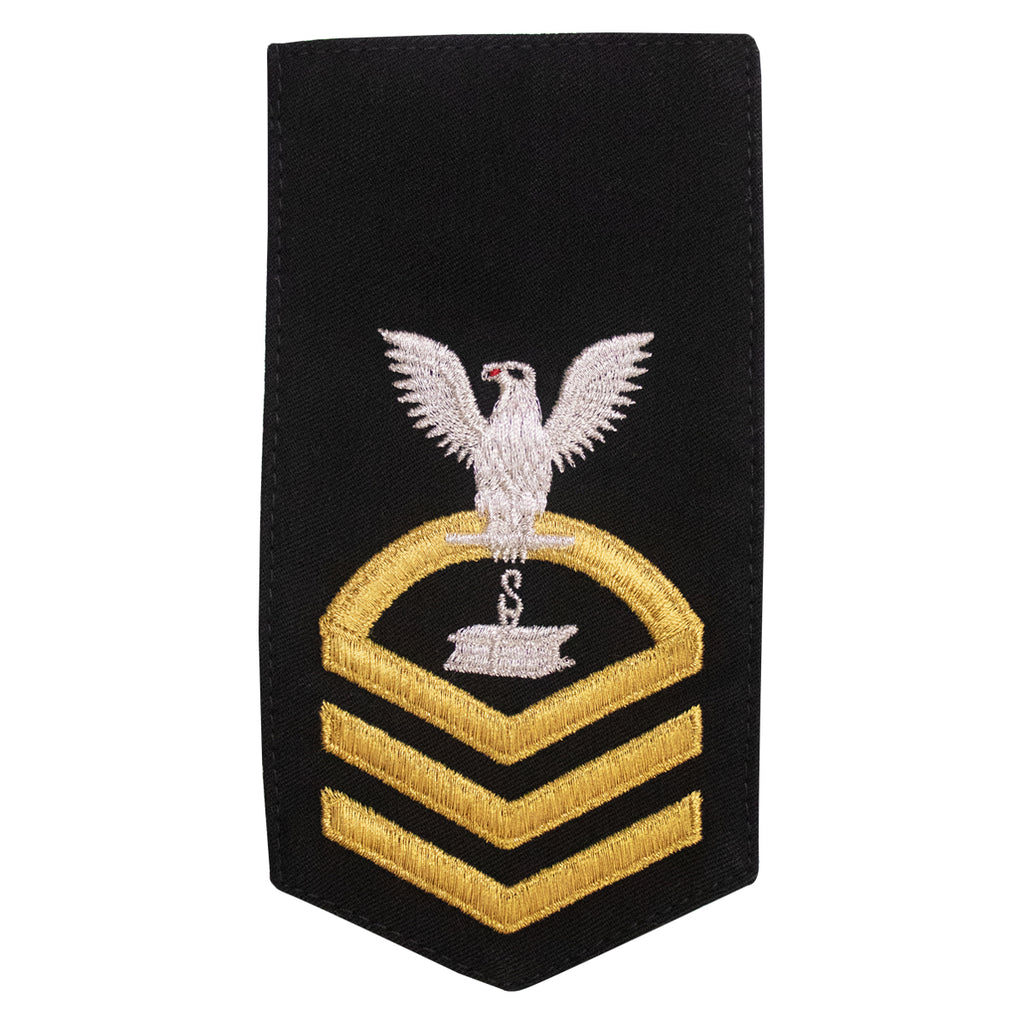 Navy rating badge E-7 seaworthy-all machine made eagle and center with embroidered gold embroidered on blue SW Steelworker