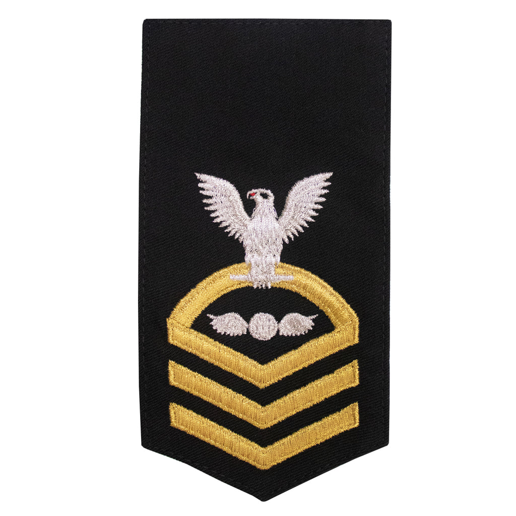 Navy rating badge E-7 seaworthy-all machine made eagle and center with embroidered gold embroidered on blue AE Aviation Electricians Mate