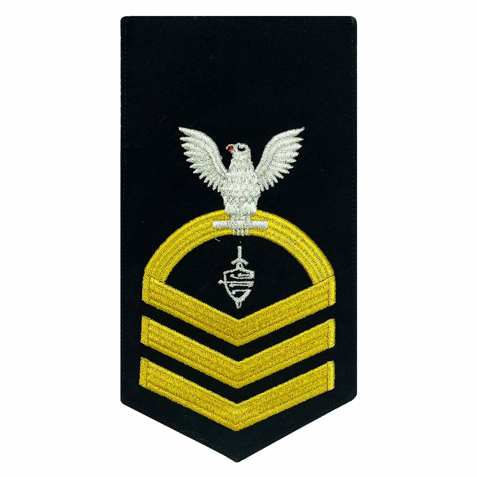 Navy rating badge Male E-7 seaworthy-all machine made eagle and center with embroidered gold embroidered on blue CWT Cyber Warfare Technician