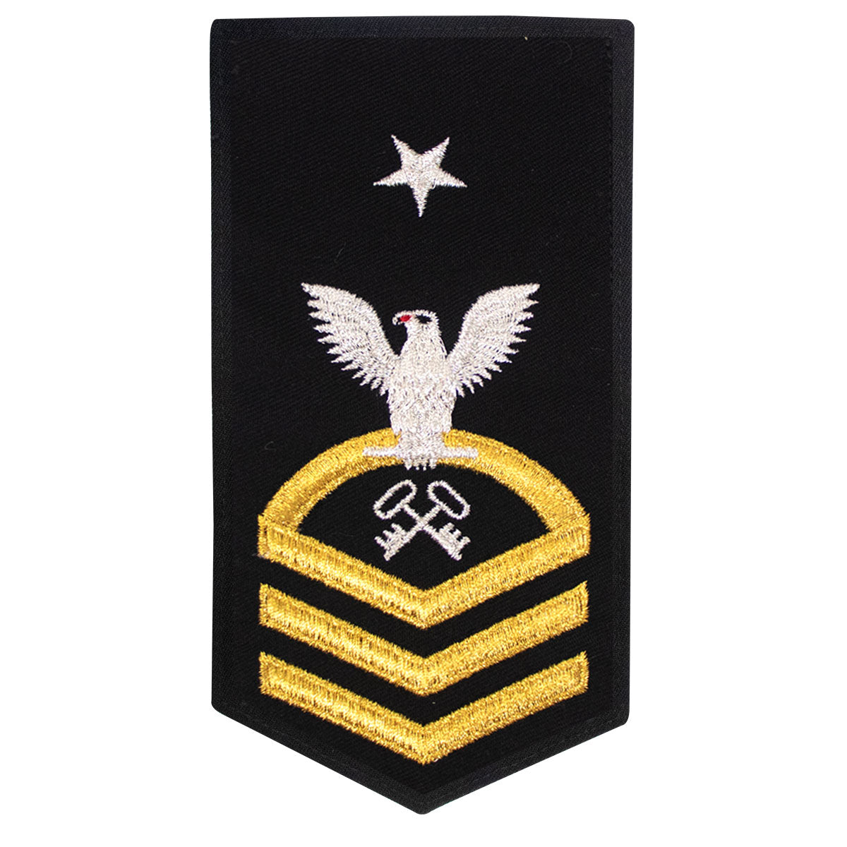 Navy rating badge E-8 seaworthy-all machine made eagle and center with embroidered gold embroidered on blue LS Logistics Specialist