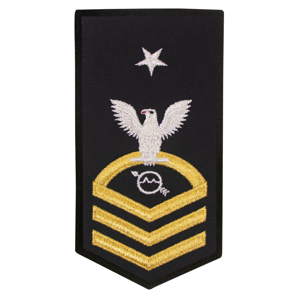 Navy rating badge E-8 seaworthy-all machine made eagle and center with embroidered gold embroidered on blue OS Operations Specialist