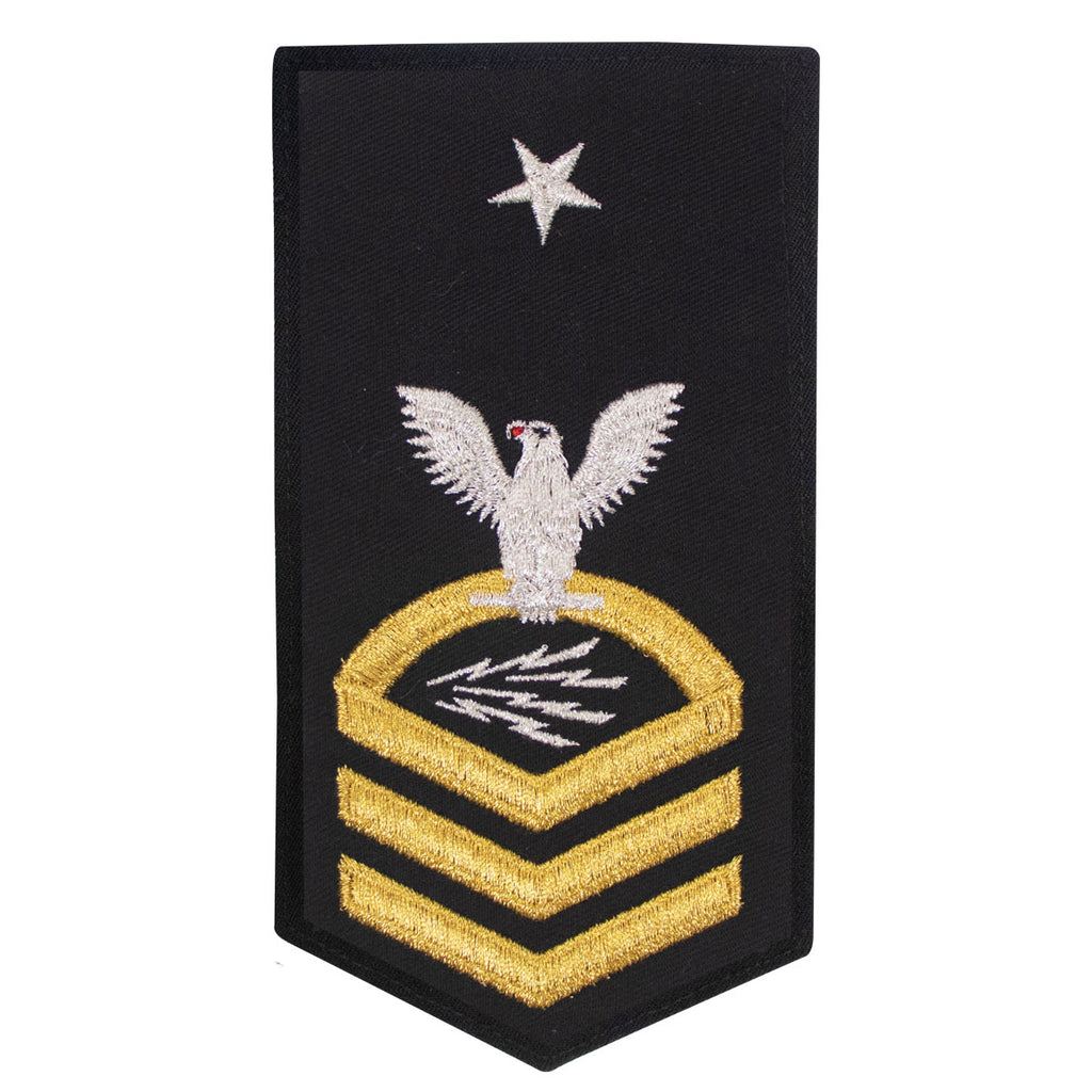 Navy rating badge E-8 seaworthy-all machine made eagle and center with embroidered gold embroidered on blue IT INFORMATION SYSTEMS TECH