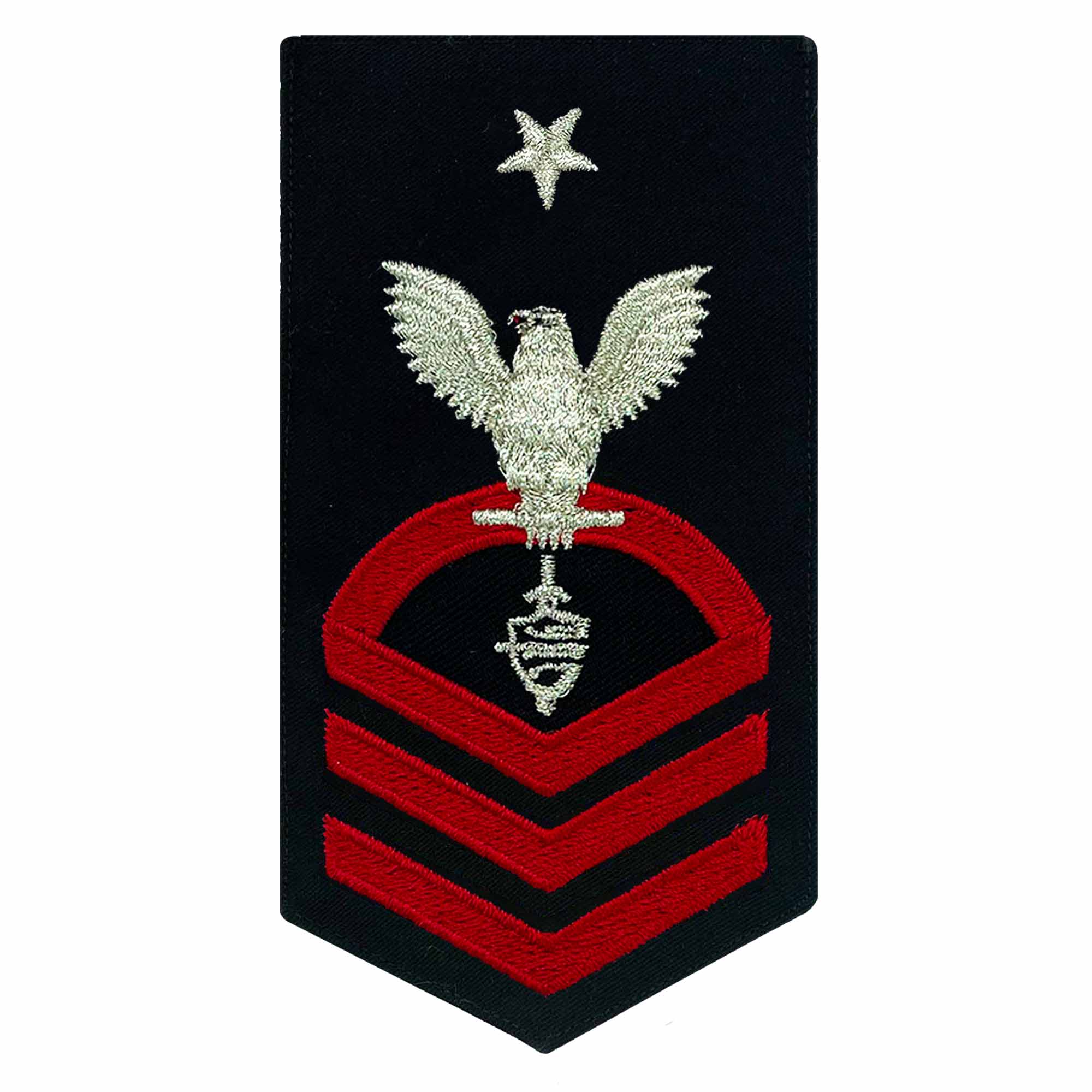 Navy rating badge E-8 seaworthy embroidered eagle and center with red chevrons on blue CWT Cyber Warfare Technician - individually priced.