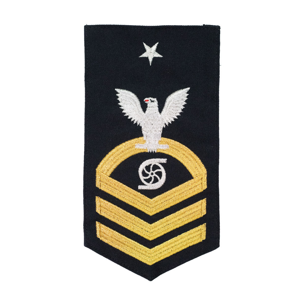 Navy rating badge E-8 seaworthy-all machine made eagle and center with embroidered gold embroidered on blue GS Gas Turbine System Technician