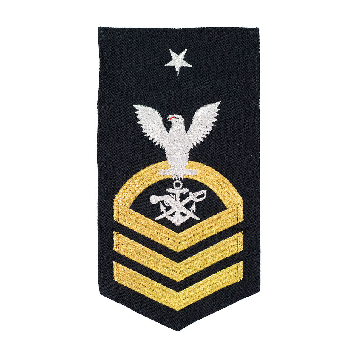 Navy rating badge E-8 seaworthy-all machine made eagle and center with embroidered gold embroidered on blue SB Special Warfare Boat Operator