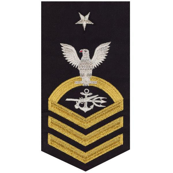Navy rating badge E-8 seaworthy-all machine made eagle and center with embroidered gold embroidered on blue SO Special Warfare Operator.