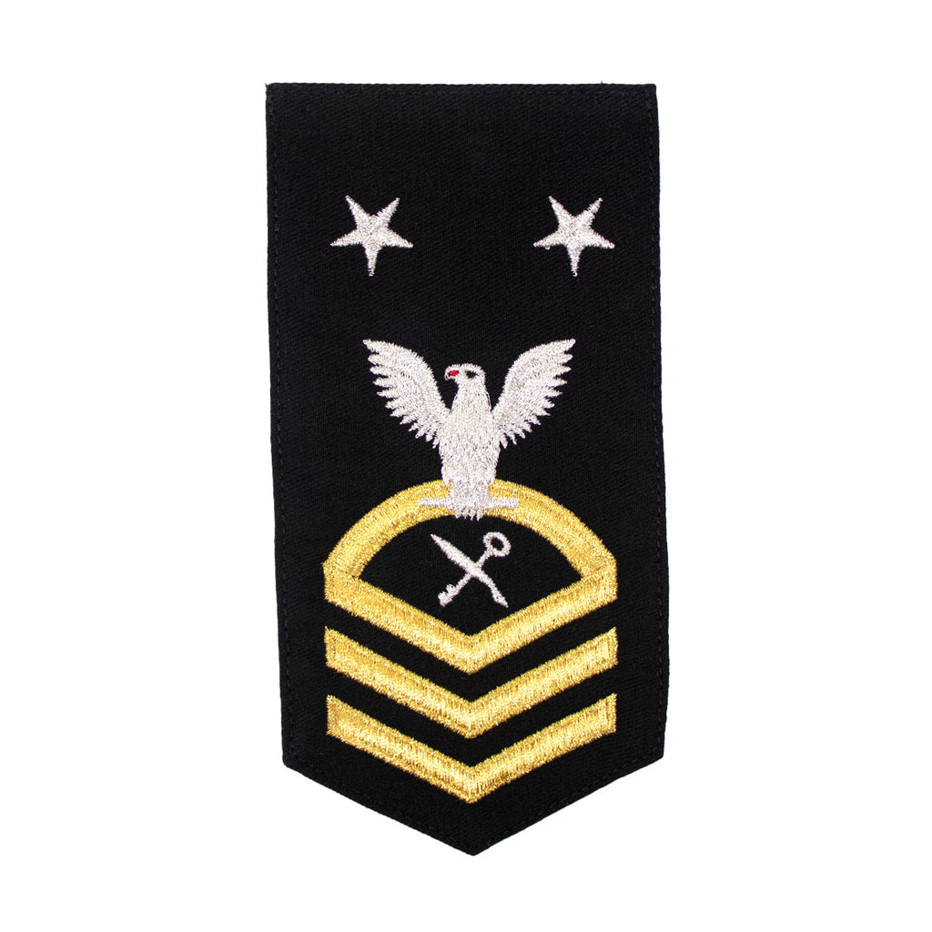 Navy rating badge E-9 seaworthy-all machine made eagle and center with embroidered gold embroidered on blue (RS) Retail Services Specialist