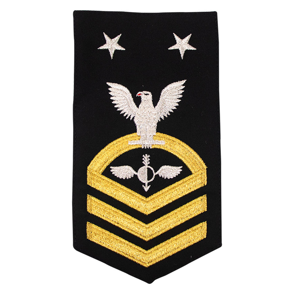 Navy rating badge E-9 seaworthy-all machine made eagle and center with embroidered gold embroidered on blue (AG) Aerographers Mate.