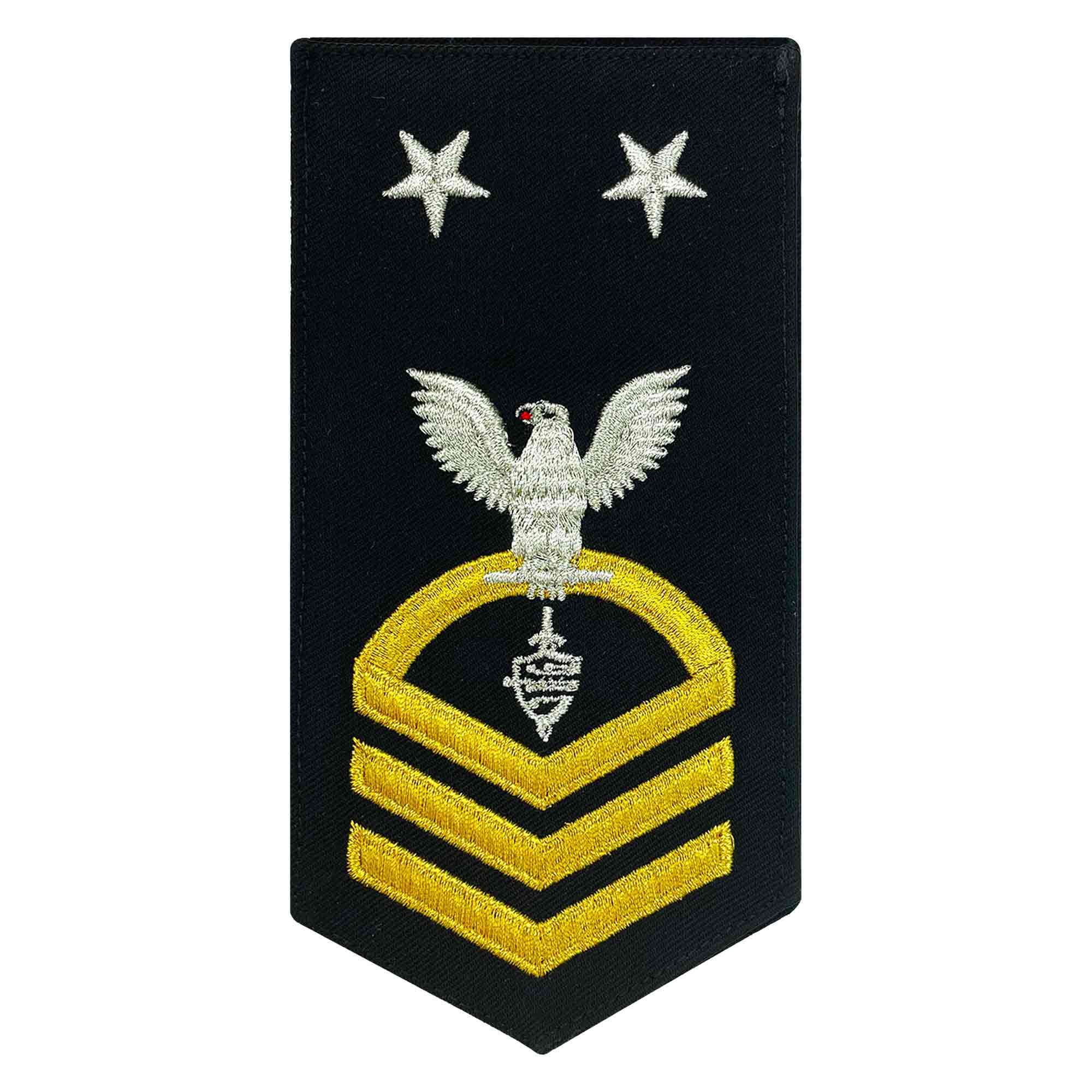 Navy rating badge E-9 seaworthy-all machine made eagle and center with embroidered gold embroidered on blue CWT Cyber Warfare Technician.
