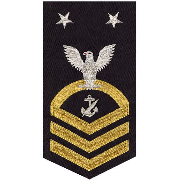 Navy rating badge E-9 seaworthy-all machine made eagle and center with embroidered gold embroidered on blue (NC) Navy Counselor - individually priced.
