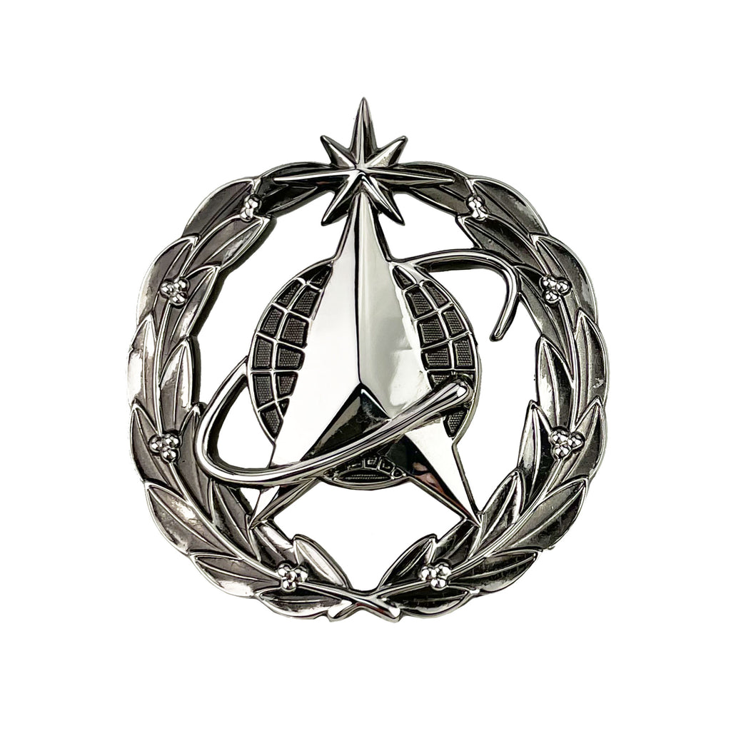 Space Force Officer cap device: Male. Cap device has 2 clutch backs with screw post backing.