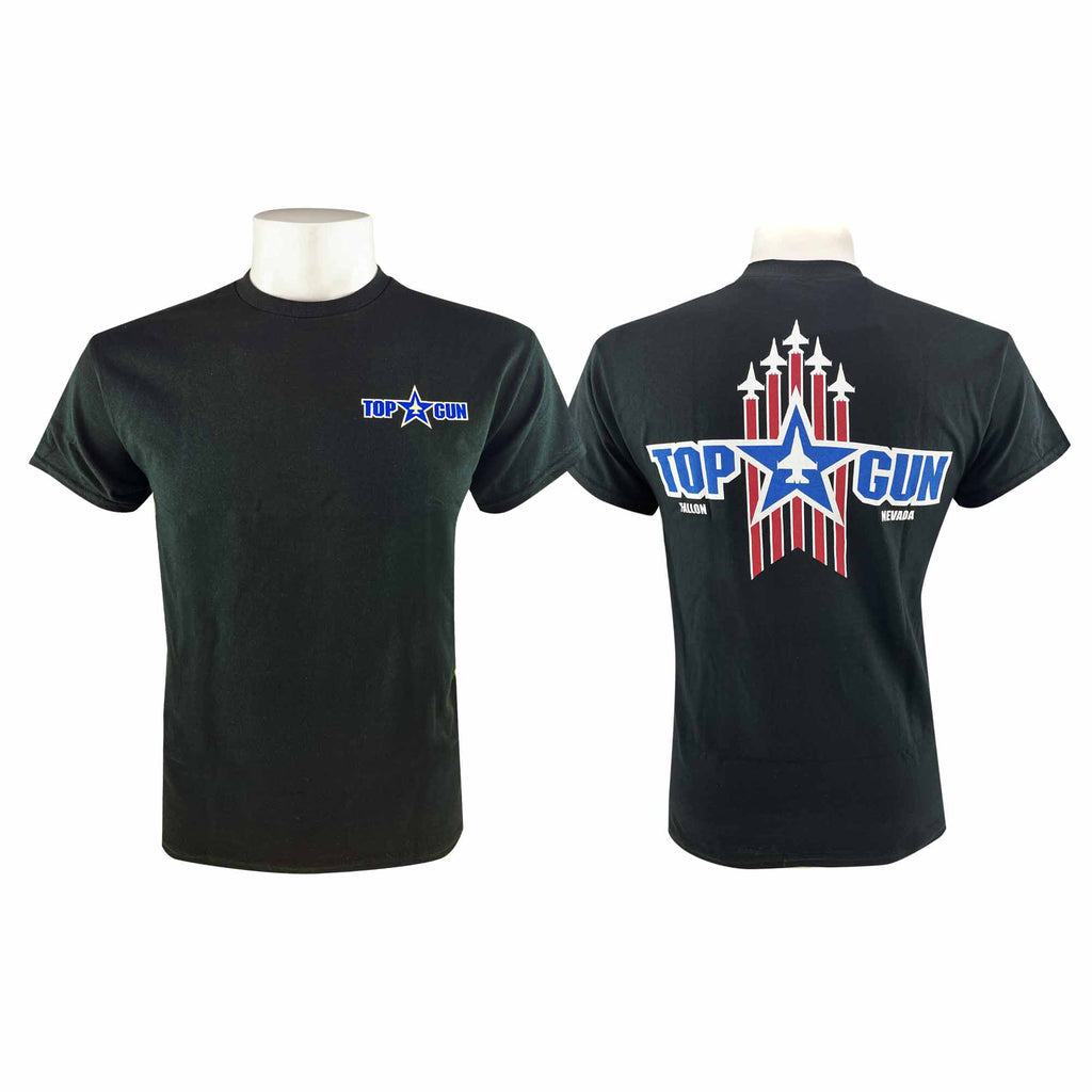 Top Gun T-Shirt with Red/White Back Logo - tee color is Black. Please select size. Limited quantities available.