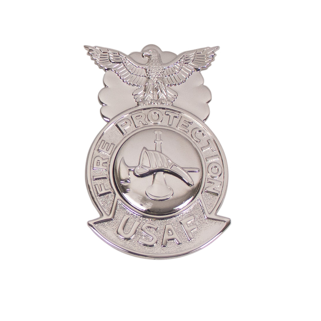 Air Force badge regulation mirror finish Fire Protection - individually priced. The Firefighter badge is awarded upon graduation from the Department of Defense Fire School and assignment as a fireman.