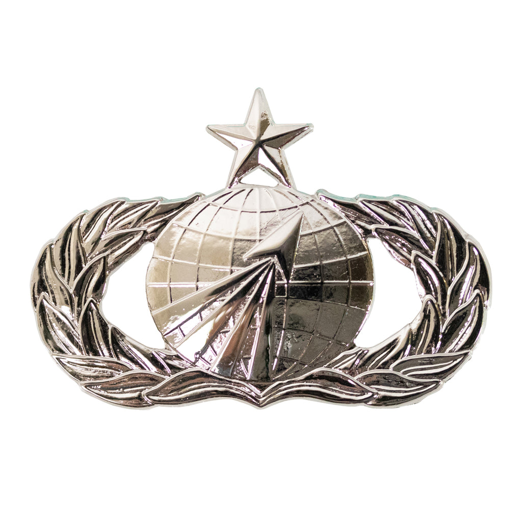 E51 Officers wear the senior badge after 7 years and enlisted personnel wear the master badge as a master sergeant or above with 5 years in the specialty from award of the 7-skill level.