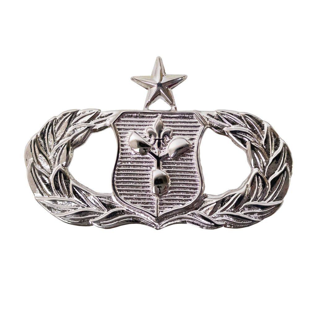 Air Force badge regulation mirror finish Senior Weather Operations. To obtain the senior badge, officers had to have 7 years experience and a fully qualified AFSC while enlisted personnel needed a 7-level AFSC.