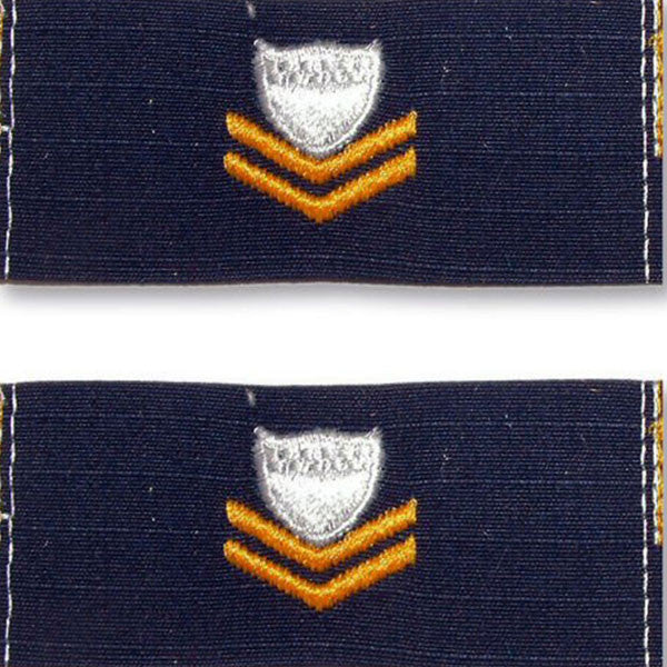 Coast Guard (USCG) Petty Officer 2nd Class E-5 Collar Insignia embroidered on blue ripstop.