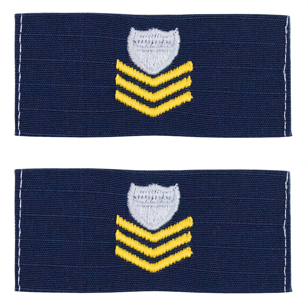 Coast Guard (USCG) Petty Officer 1st Class E-6 Collar Insignia embroidered on blue ripstop.