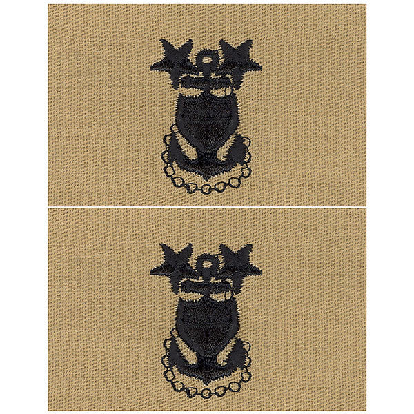 Coast Guard (USCG) Master Chief (MCPO) E-9 Collar Insignia embroidered on desert tan.