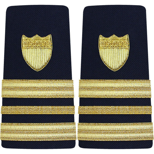 Coast Guard (USCG) Shoulder Board Enhanced (Soft) Lieutenant Commander (2 ½ gold stripes & CG shield).