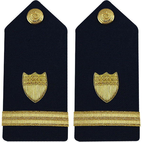 Coast Guard (USCG) Hard Shoulder Board Female Ensign. (1 gold stripe & CG shield)