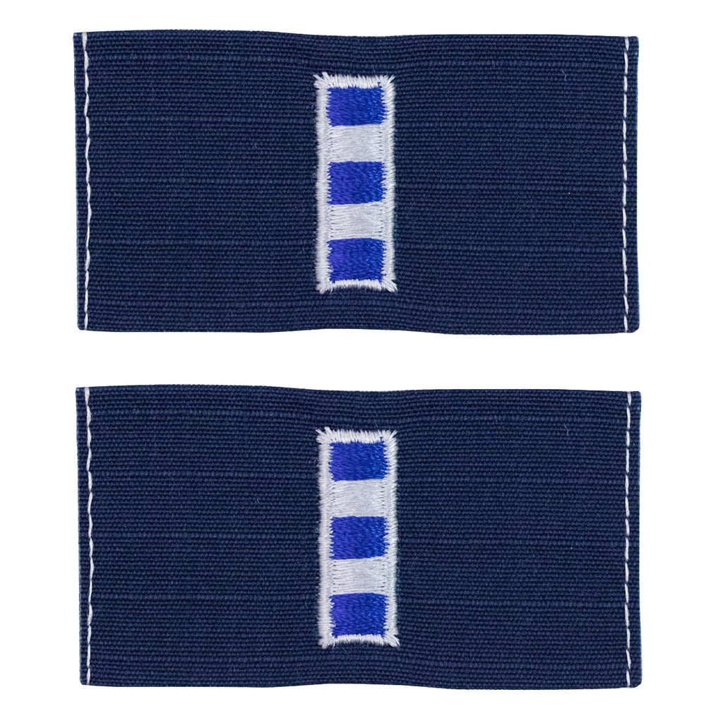 Coast Guard (USCG) Collar Device WO-4 embroidered on blue ripstop.