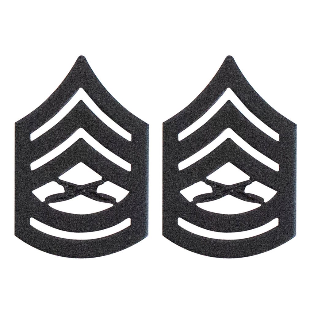 New Hard Corps finish United States Marine Corps (USMC) chevron black metal GYSGT Gunnery Sergeant E-7 (solid brass). Priced per pair.