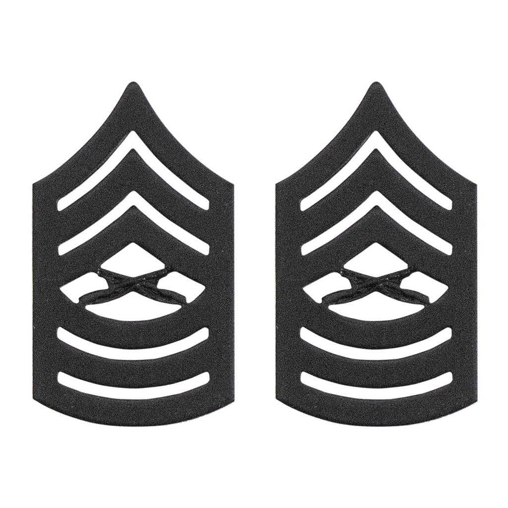 New Hard Corps finish United States Marine Corps (USMC) chevron black metal MSGT Master Sergeant E-8 (solid brass). Priced per pair.