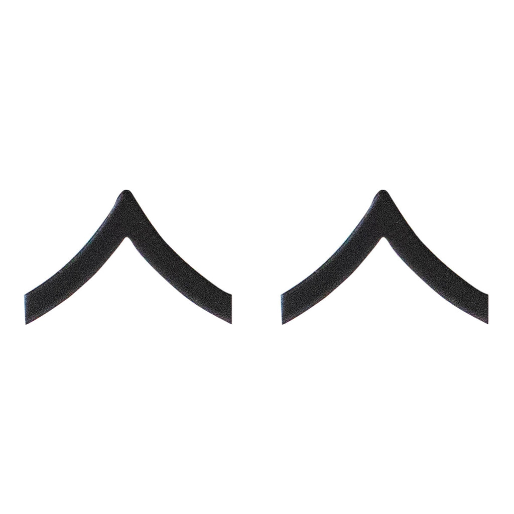 New Hard Corps finish United States Marine Corps (USMC) chevron black metal PFC Private 1st class E-2 (solid brass). Priced per pair.
