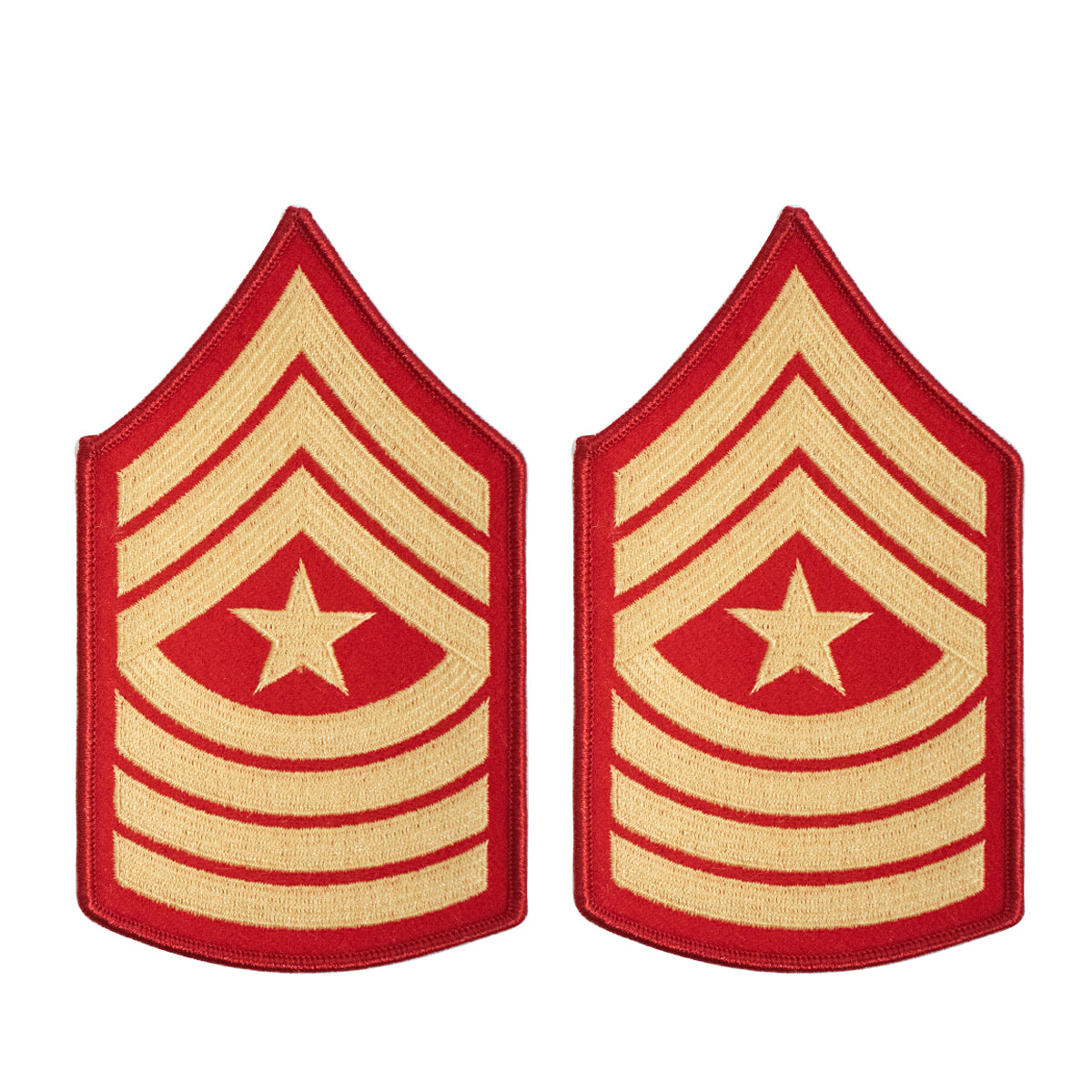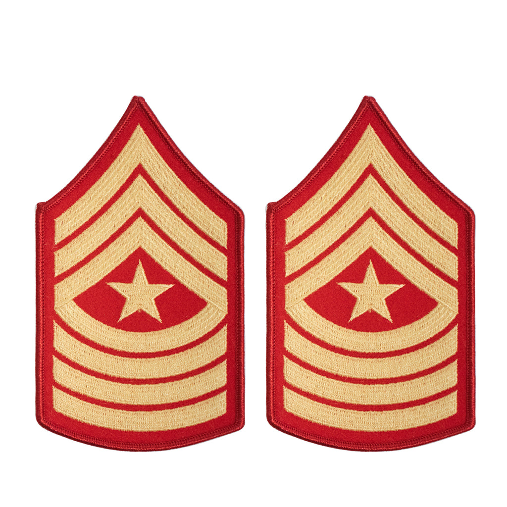 United States Marine Corps (USMC) Chevron female gold embroidered on red Sergeant Major (SGTMAJ) new style. Priced per pair.