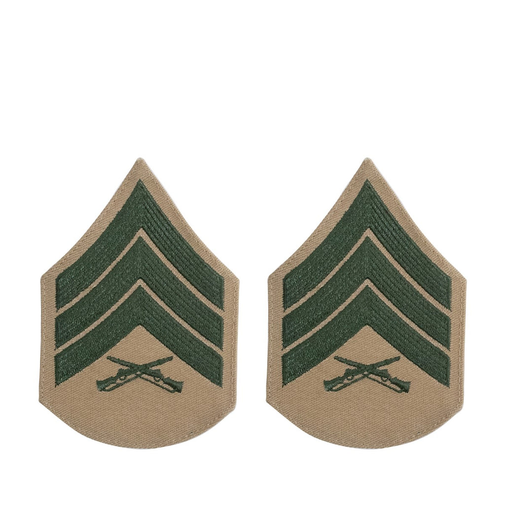 United States Marine Corps (USMC) Chevron female green embroidered on khaki Sergeant (SGT) new style. Priced per pair.
