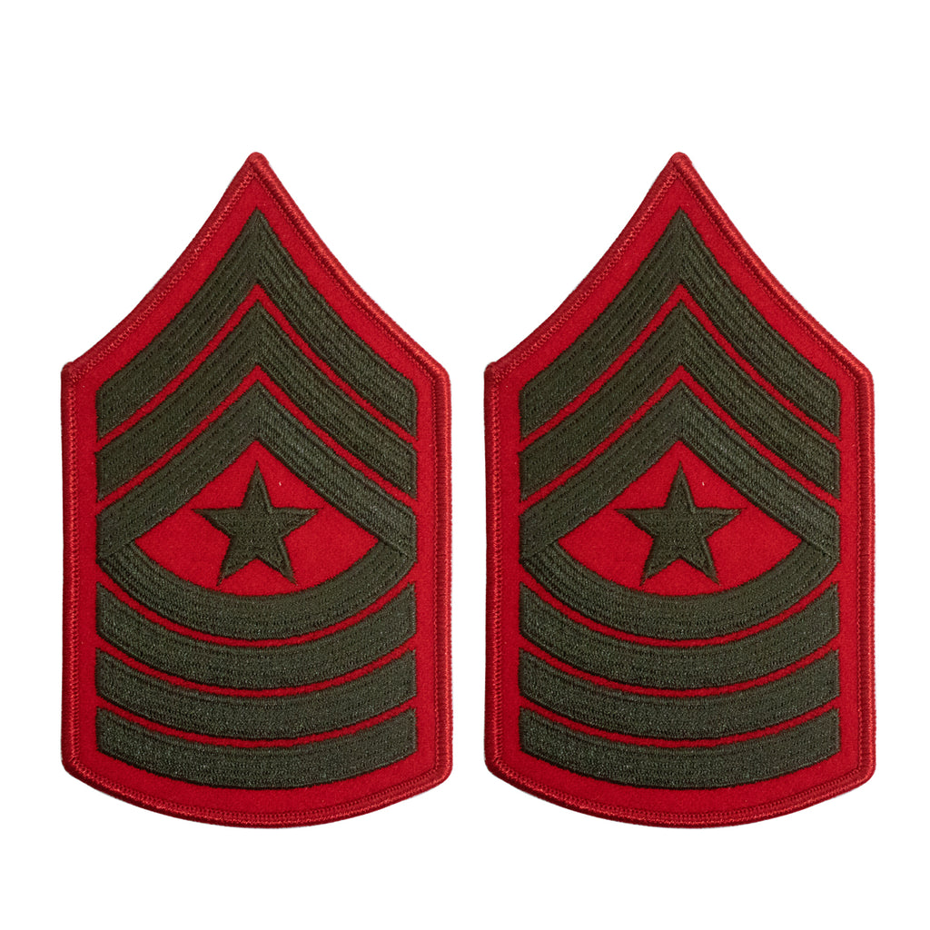 United States Marine Corps (USMC) Chevron female green embroidered on red Sergeant Major (SGTMAJ) new style. Priced per pair.