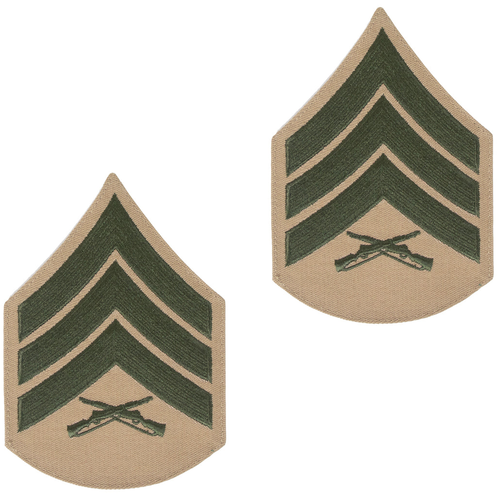 Marine Corps Chevron: Sergeant - green embroidered on khaki, male