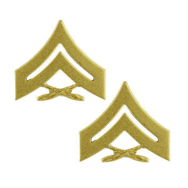 United States Marine Corps (USMC) chevron satin gold CPL Corporal.Gold chevrons are only worn with blue wooly pully sweater during recruiting duty.