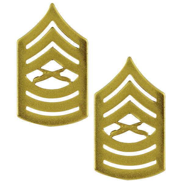 United States Marine Corps (USMC) chevron satin gold MSGT Master Sergeant. Gold chevrons are only worn with blue wooly pully sweater during recruiting duty.