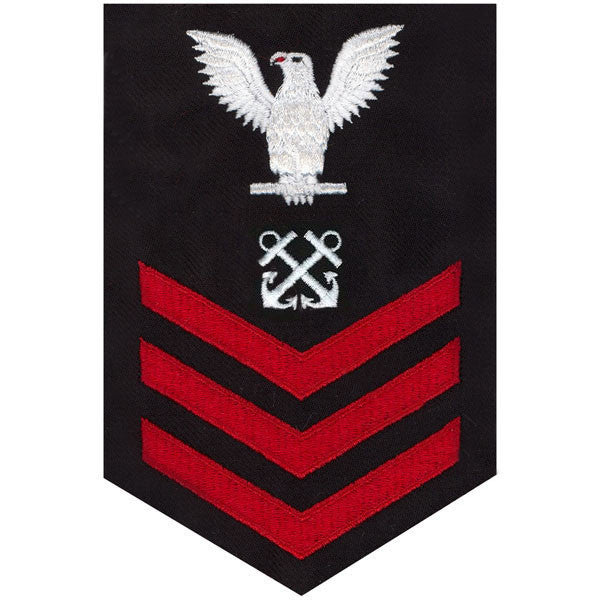 Navy E6 MALE Rating Badge: Boatswain's Mate - red chevrons on blue serge